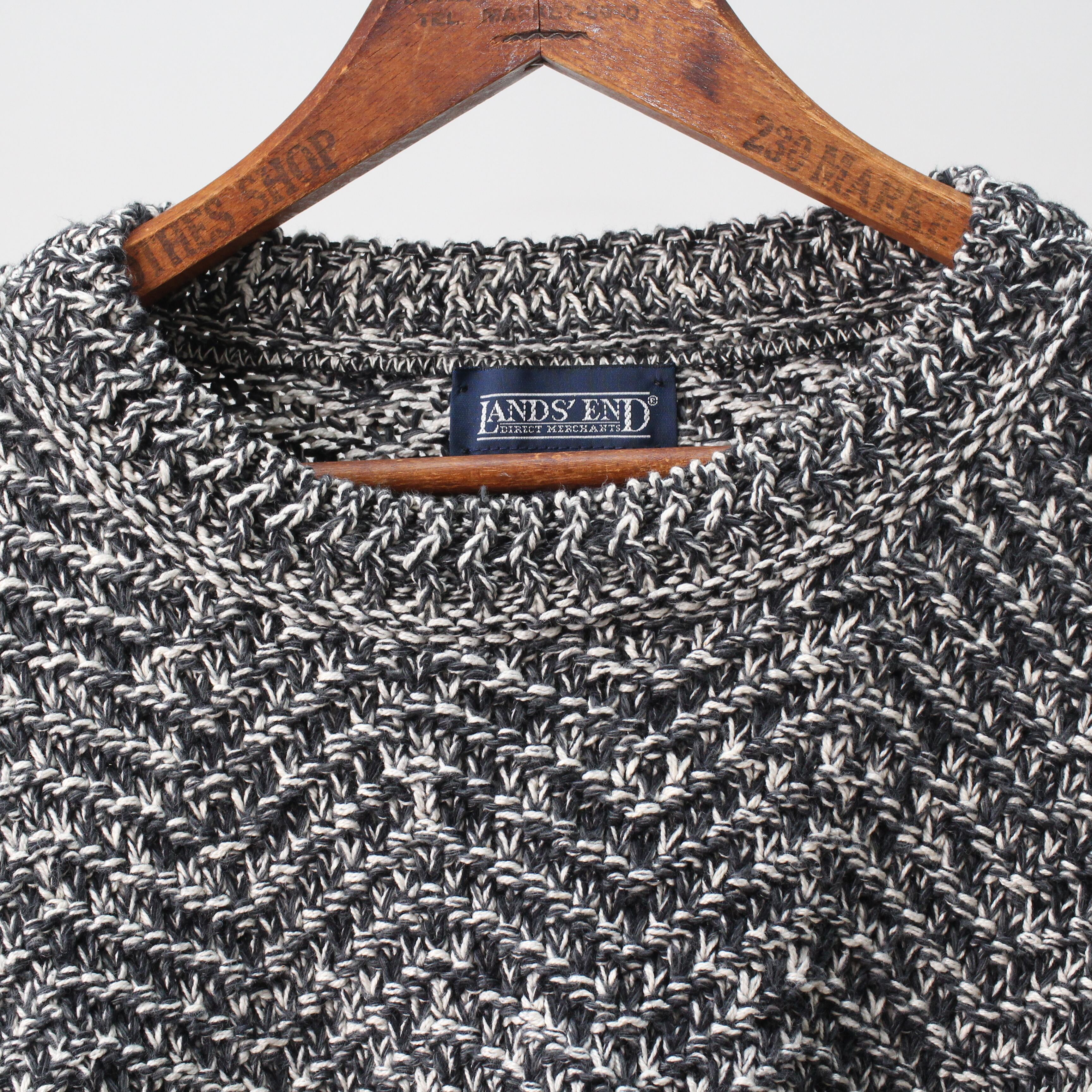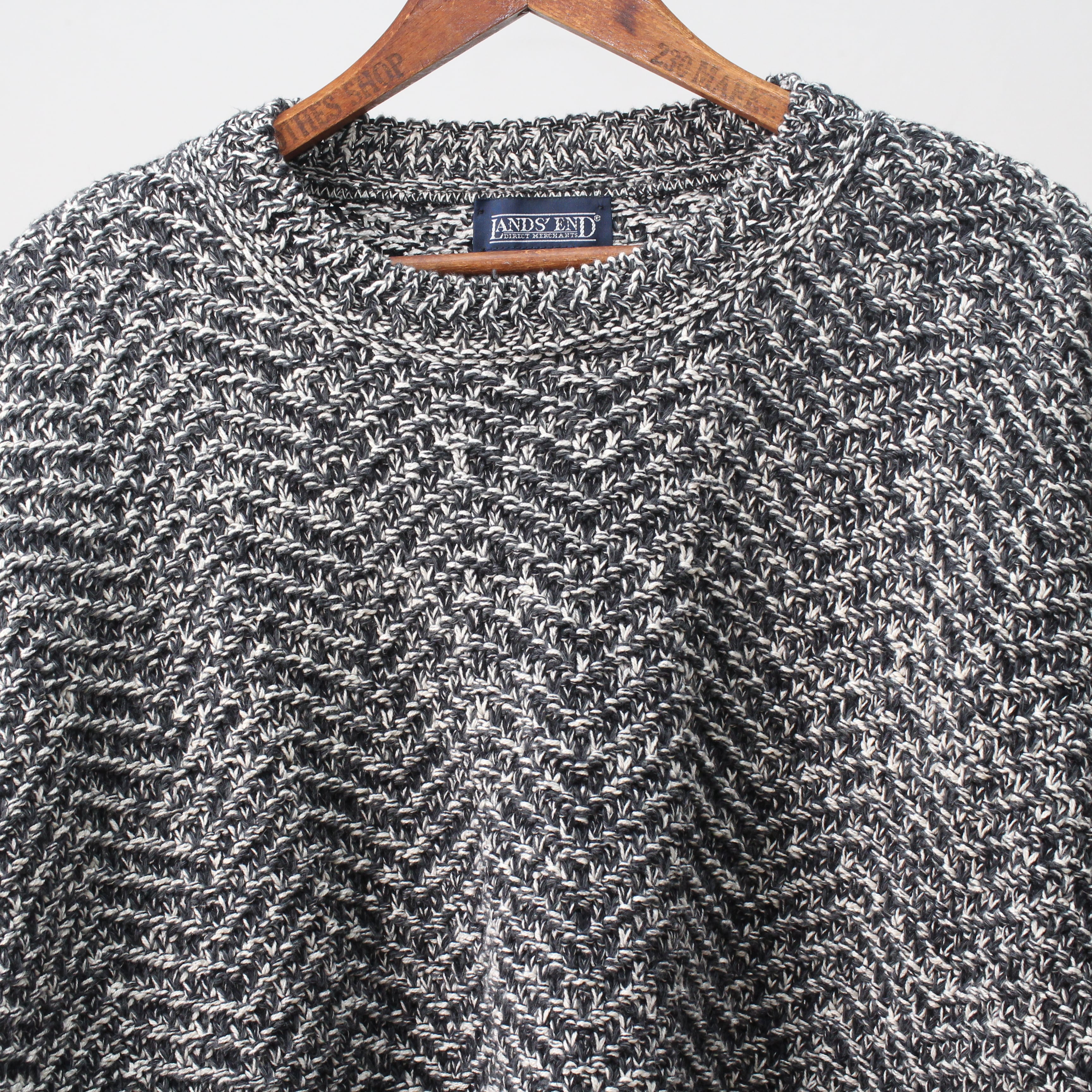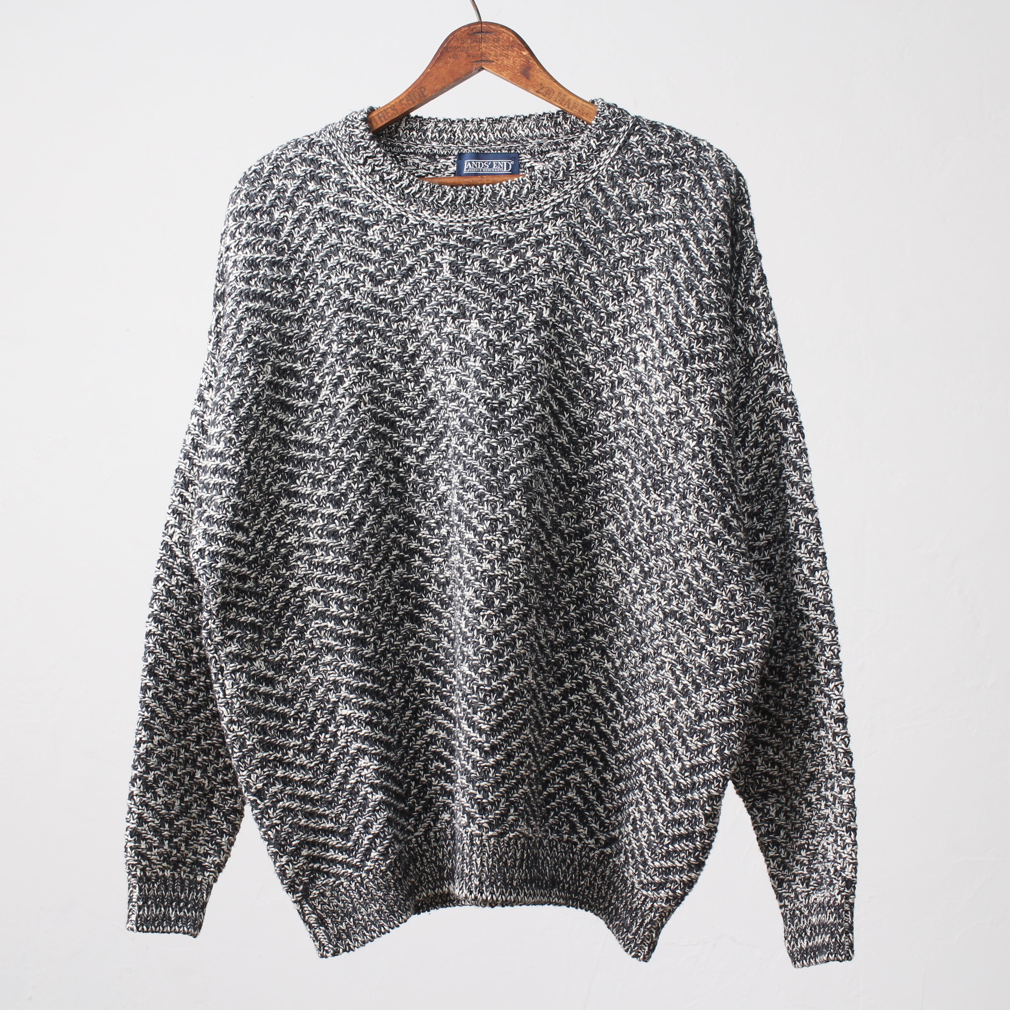 (DEADSTOCK)1980s〜LANDS END BLACK HRRNGBONE CREW KNIT SWEATER