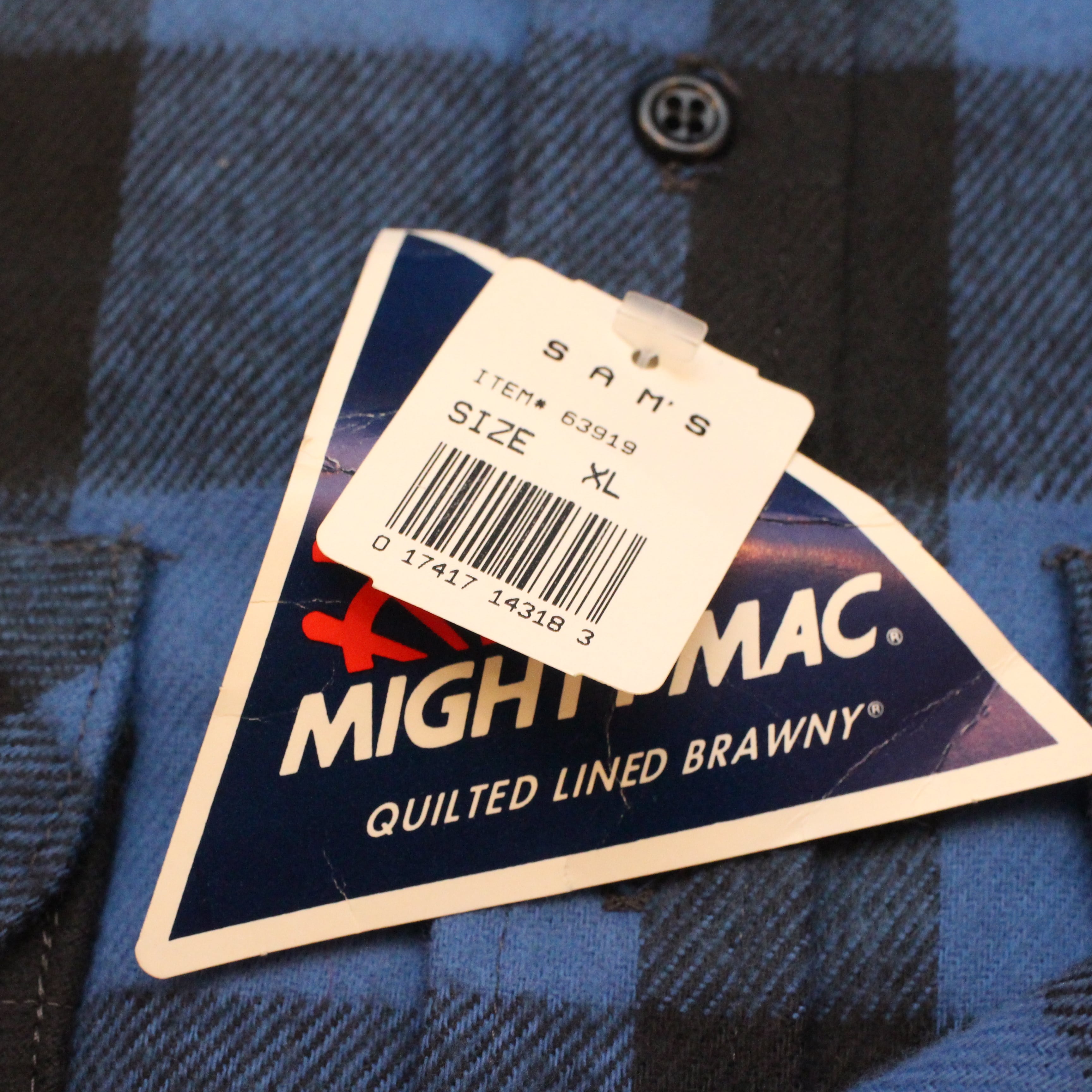 1980's〜MIGHTY-MAC QUILTED LINED BRAWNY BLK×BLUE (DEADSTOCK)